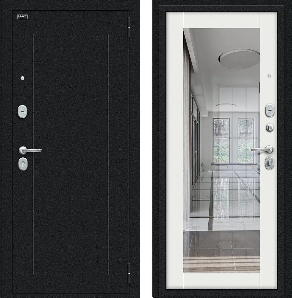 Надежная входная Дверь Браво Флэш Букле черное/Off-white премиум класса по цене 34 451 руб. Большая толщина стали защитит от проникновения в ваш дом, квартиру или коттедж. Используется очень качественная фурнитура: замки, цилиндры, ручки, защелки. Покрытие и отделка двери изготовлено под внимательным контролем производителя. Дверь имеет долгий срок службы и гарантию.