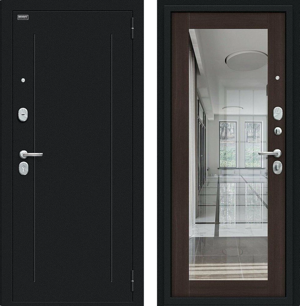 Надежная входная Дверь Браво Флэш Букле черное/Wenge Veralinga премиум класса по цене 33 501 руб. Большая толщина стали защитит от проникновения в ваш дом, квартиру или коттедж. Используется очень качественная фурнитура: замки, цилиндры, ручки, защелки. Покрытие и отделка двери изготовлено под внимательным контролем производителя. Дверь имеет долгий срок службы и гарантию.