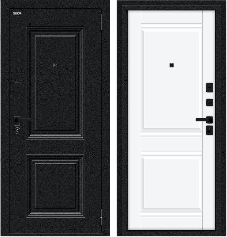Надежная входная Дверь Браво Некст МФ/SBlack Букле черное/White Silk премиум класса по цене 36 701 руб. Большая толщина стали защитит от проникновения в ваш дом, квартиру или коттедж. Используется очень качественная фурнитура: замки, цилиндры, ручки, защелки. Покрытие и отделка двери изготовлено под внимательным контролем производителя. Дверь имеет долгий срок службы и гарантию.