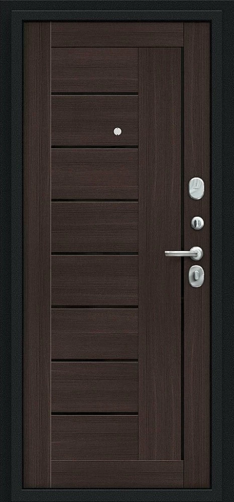 Надежная входная Дверь Браво Проф Букле черное/Wenge Veralinga премиум класса по цене 33 651 руб. Большая толщина стали защитит от проникновения в ваш дом, квартиру или коттедж. Используется очень качественная фурнитура: замки, цилиндры, ручки, защелки. Покрытие и отделка двери изготовлено под внимательным контролем производителя. Дверь имеет долгий срок службы и гарантию.