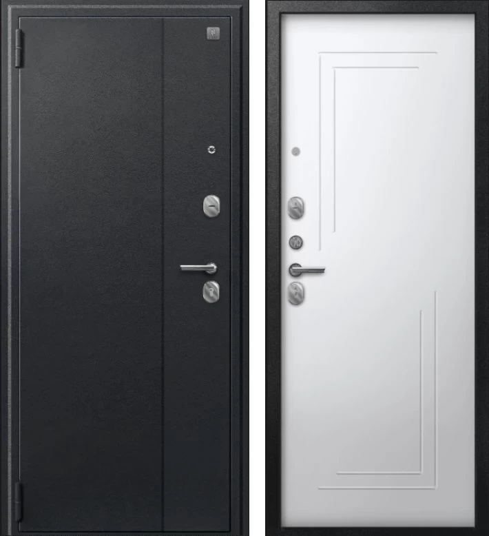 Надежная входная Дверь A-06 черный сатин - кашемир белый премиум класса по цене 30 381 руб. Большая толщина стали защитит от проникновения в ваш дом, квартиру или коттедж. Используется очень качественная фурнитура: замки, цилиндры, ручки, защелки. Покрытие и отделка двери изготовлено под внимательным контролем производителя. Дверь имеет долгий срок службы и гарантию.