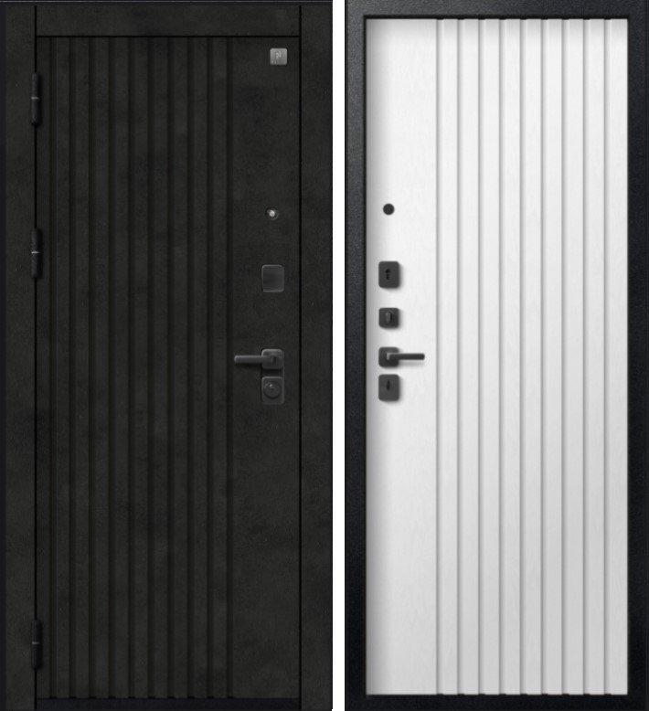 Надежная входная Дверь V-15 Черный муар + Бетон темный - Софт ясень белый премиум класса по цене 44 351 руб. Большая толщина стали защитит от проникновения в ваш дом, квартиру или коттедж. Используется очень качественная фурнитура: замки, цилиндры, ручки, защелки. Покрытие и отделка двери изготовлено под внимательным контролем производителя. Дверь имеет долгий срок службы и гарантию.